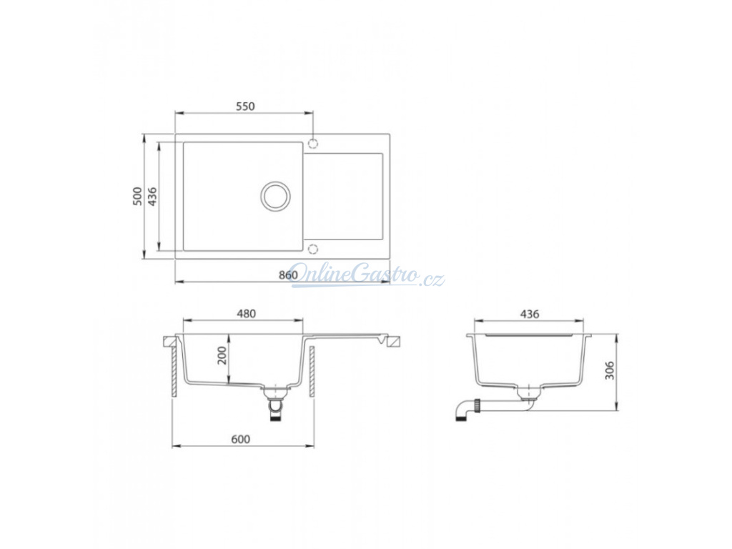 - dřez je určen pro horní montáž