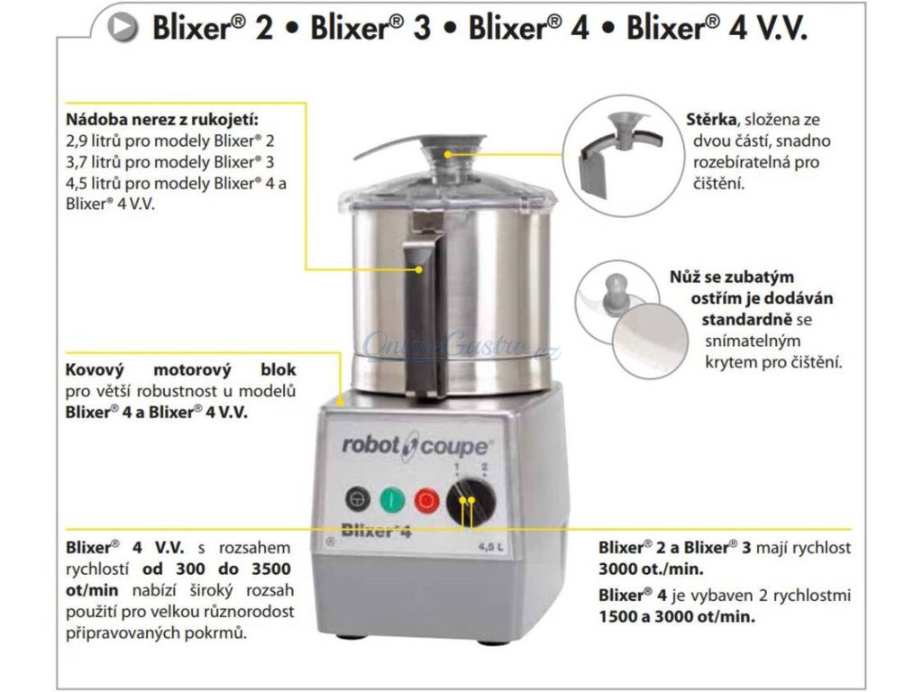 Blixer stolní 4 A, 400V je profesionální blixer určený pro každodenní přípravu stravy se změněnou strukturou v gastronomických i zdravotnických provozech. Nabízí 2–15 porcí, což v praxi znamená plynulý provoz bez zdržení a přesné dávkování porcí.