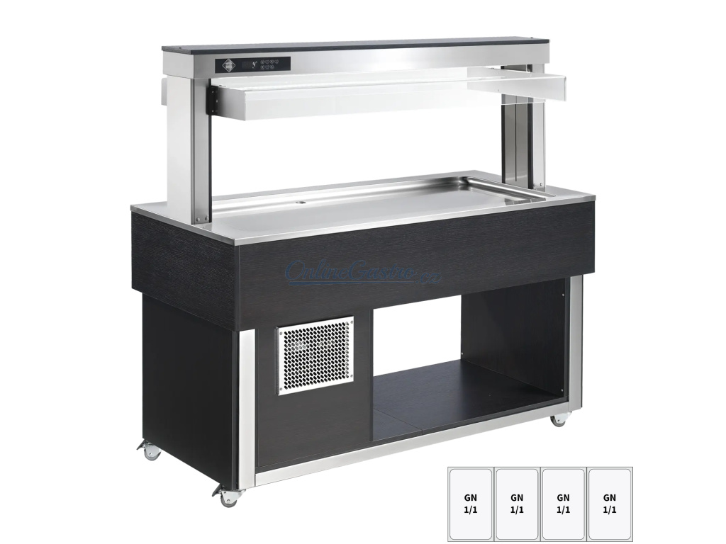 - Kapacita: 4 × GN 1/1, hloubka GN 30 mm