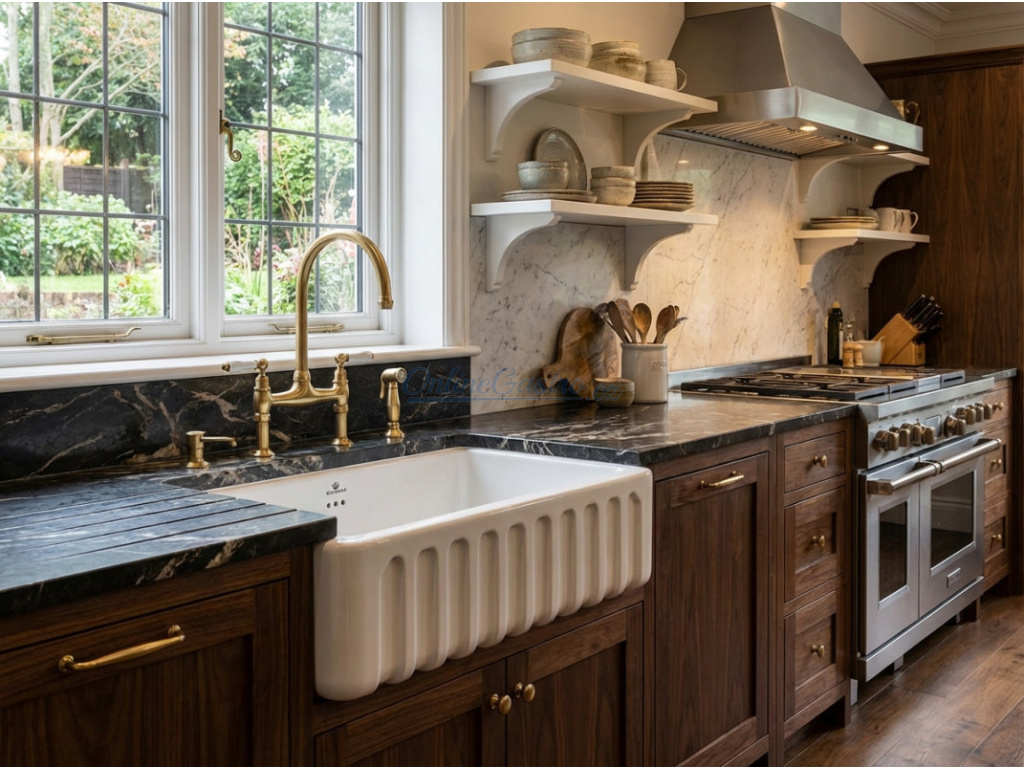 ✔ Chambord – designový keramický dřez jako dominantní prvek kuchyně.