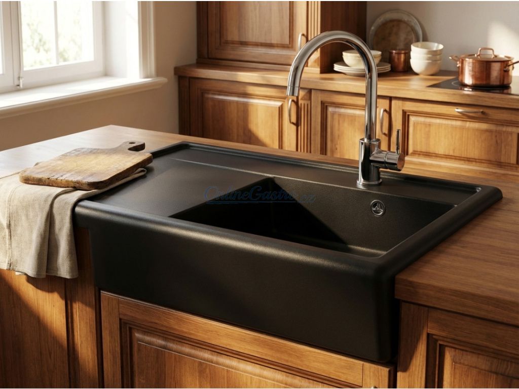 Keramický povrch dřezů Chambord je glazovaný, barevně stálý a vysoce odolný proti poškrábání, nárazům i vysokým teplotám. Díky snadné údržbě a dlouhé životnosti jsou ideální volbou pro náročné domácí kuchyně i reprezentativní interiéry.