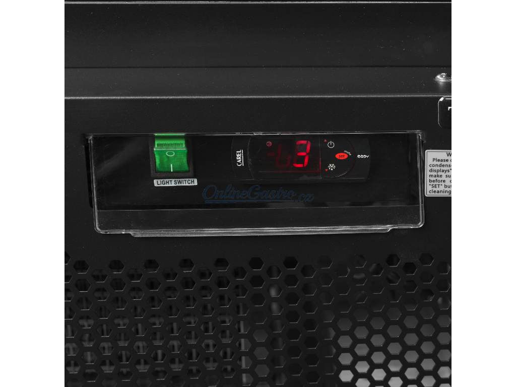 - Prosklené dveře: dvojité tvrzené sklo zajišťuje perfektní prezentaci výrobků a šetří energii.
