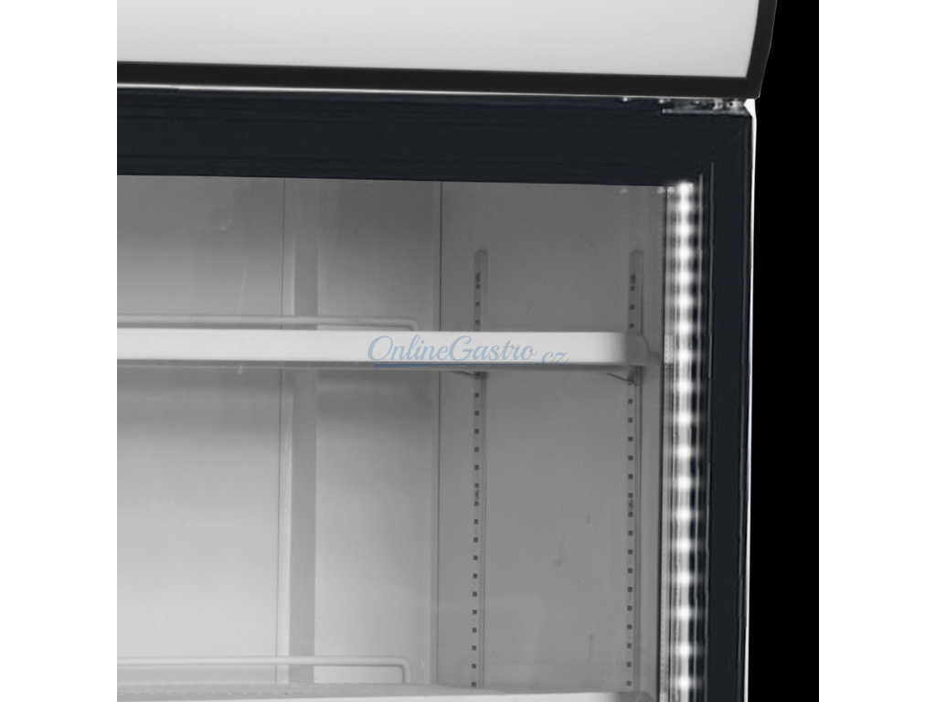 - Kvalitní LED osvětlení: Perfektní prezentace zboží a snadná orientace uvnitř skříně.