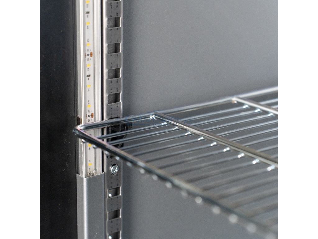 Chladnička Tefcold SGD 300GE je prémiová gastro lednice s prosklenými dveřmi, která kombinuje špičkovou prezentaci s profesionálním výkonem. Nabízí čistý objem 260 l, teplotní rozsah +2 až +12 °C, čtyři nastavitelné roštové police a účinné ventilované chlazení, které udržuje stálou a rovnoměrnou teplotu v celém prostoru. Díky LED osvětlení s vypínačem jsou produkty výborně viditelné a zámek dveří zajistí bezpečné uložení zboží.