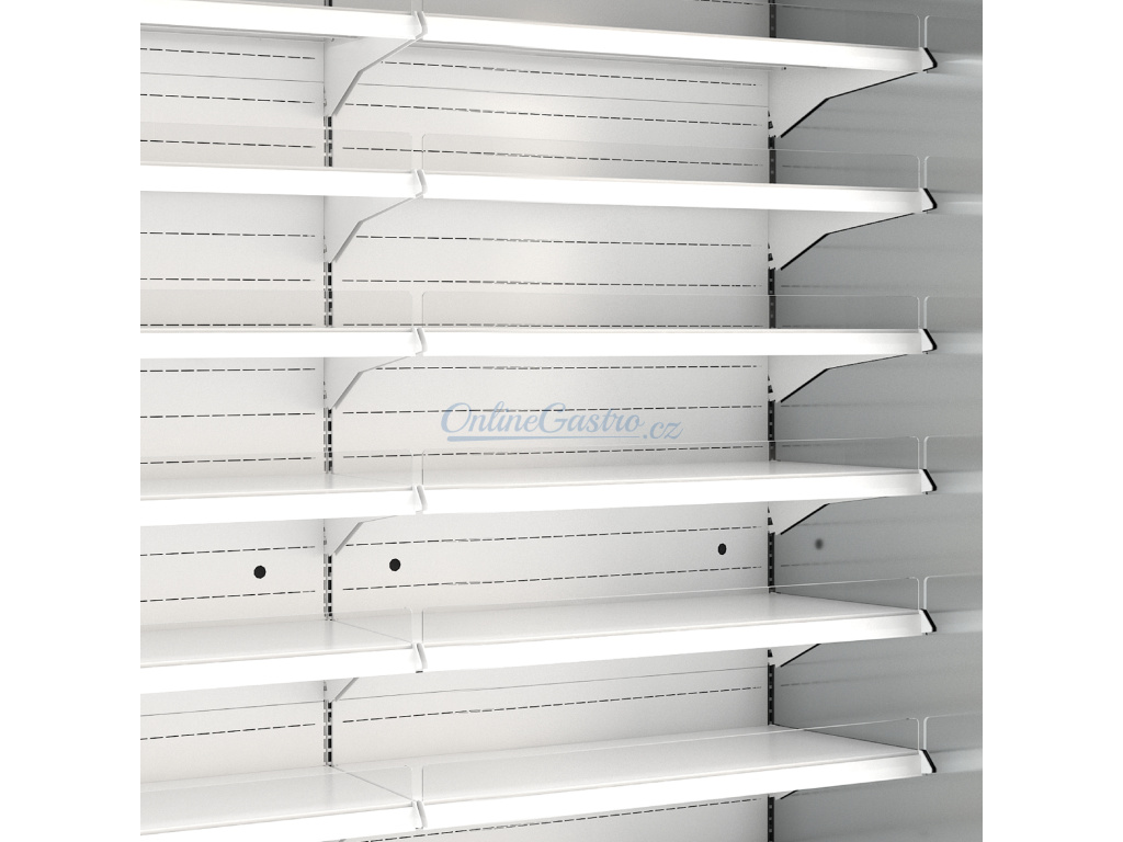 - Pět nastavitelných polic: Flexibilní uspořádání vnitřního prostoru dle aktuálních potřeb provozu.
