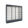 Chladicí vitrína přístěnná Juka York 197/70/200 DP bez zabudovaného agregátu (chladicí výkon 900 W / 1 bm při odpařovací teplotě -10 °C) s posuvnými dveřmi a teplotním rozsahem od 2 do 8 °C. Vybavena nástřikovým ventilem, funkcí automatického odtávání a digitálním termostatem.