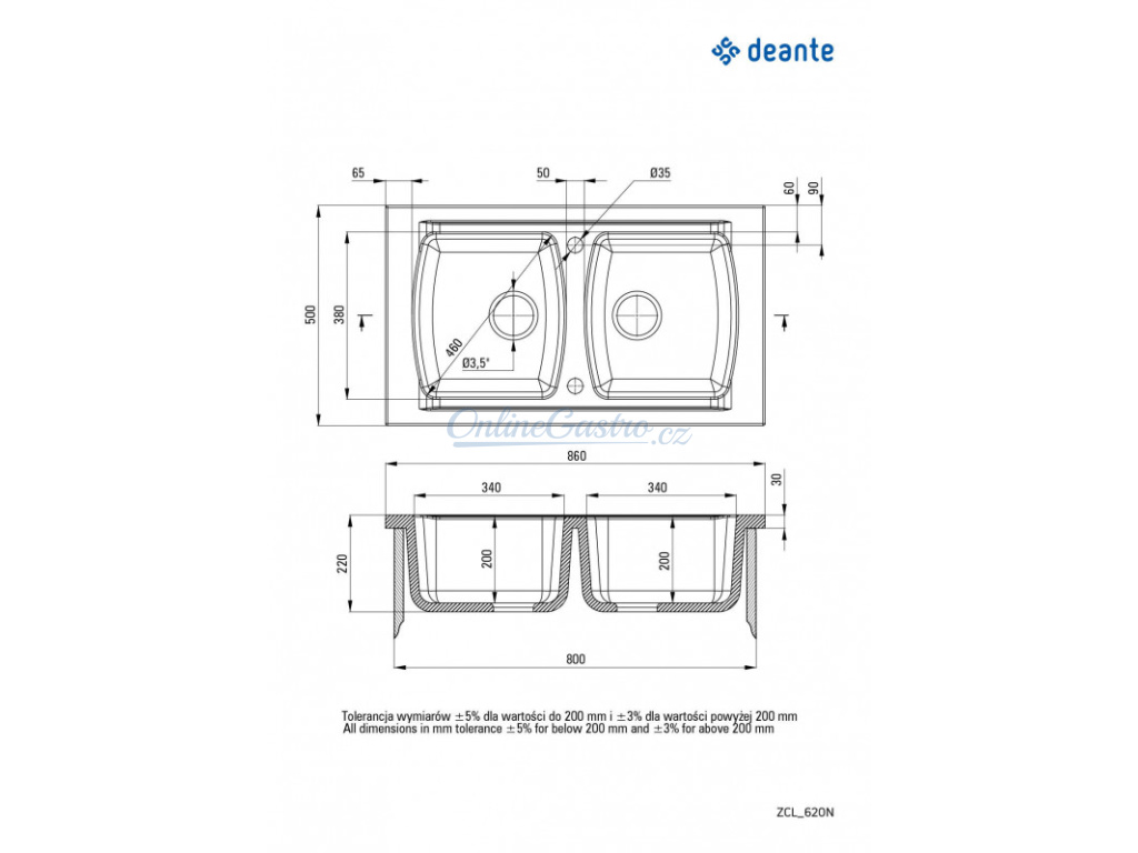 Upozornění: Díky tradiční výrobní technologii, odlévání dřezů do forem se mohou rozměry dřezu mírně lišit. Z tohoto důvodu není výrobce schopen zaručit přesné rozměry uvedené v technické specifikaci. Při návrhu kuchyně proto počítejte s jistou tolerancí, nejlépe pracujte přímo s konkrétním dřezem. Děkujeme za pochopení.