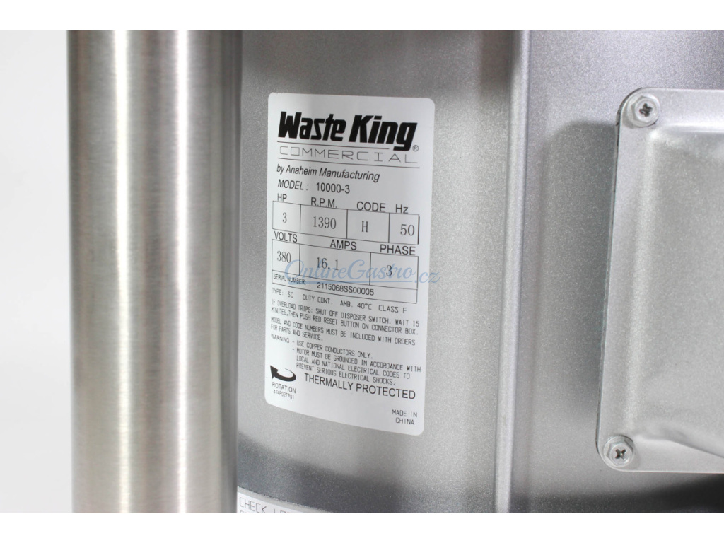 Waste King Commercial 10000 s výkonem 7460 W (10 HP) si poradí i s obtížně zpracovatelným organickým odpadem. Komerční drtič kuchyňského odpadu pro nepřetržitý, 24 hodinový provoz. Je vhodný do velkých gastronomických podniků, jako jsou závodní jídelny (až 6000 jídel ve špičce). Taktéž je vhodný do palíren, bioplynových stanic, kompostáren a dalších míst, kde je zapotřebí zpracovávat velké množství odpadu. Nerezové čepele si poradí i s houževnatým či tuhým materiálem, jako je syrové maso, kukuřičné klasy, pecky a kosti.