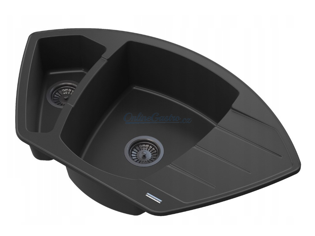 - rohový granitový dřez s druhou vaničkou a praktickým odkapávačem