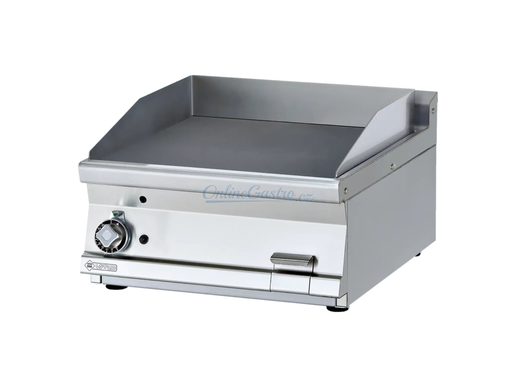 Plynová grilovací deska FTLT 76 GS, hladká. Plotna chromovaná o síle 14 mm zajišťuje vynikající vedení tepla, deska je vybavena kontrolkou chodu, vyhřátí a piezzo zapalováním. Deska obsahuje zásuvku na odpadní tekutiny.