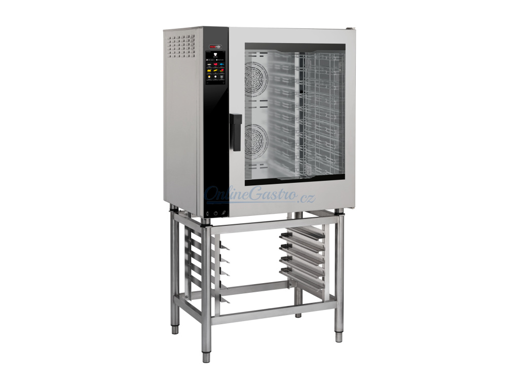 - Kapacita: 10× GN 1/1 (600×400 mm), hloubka GN 65 mm