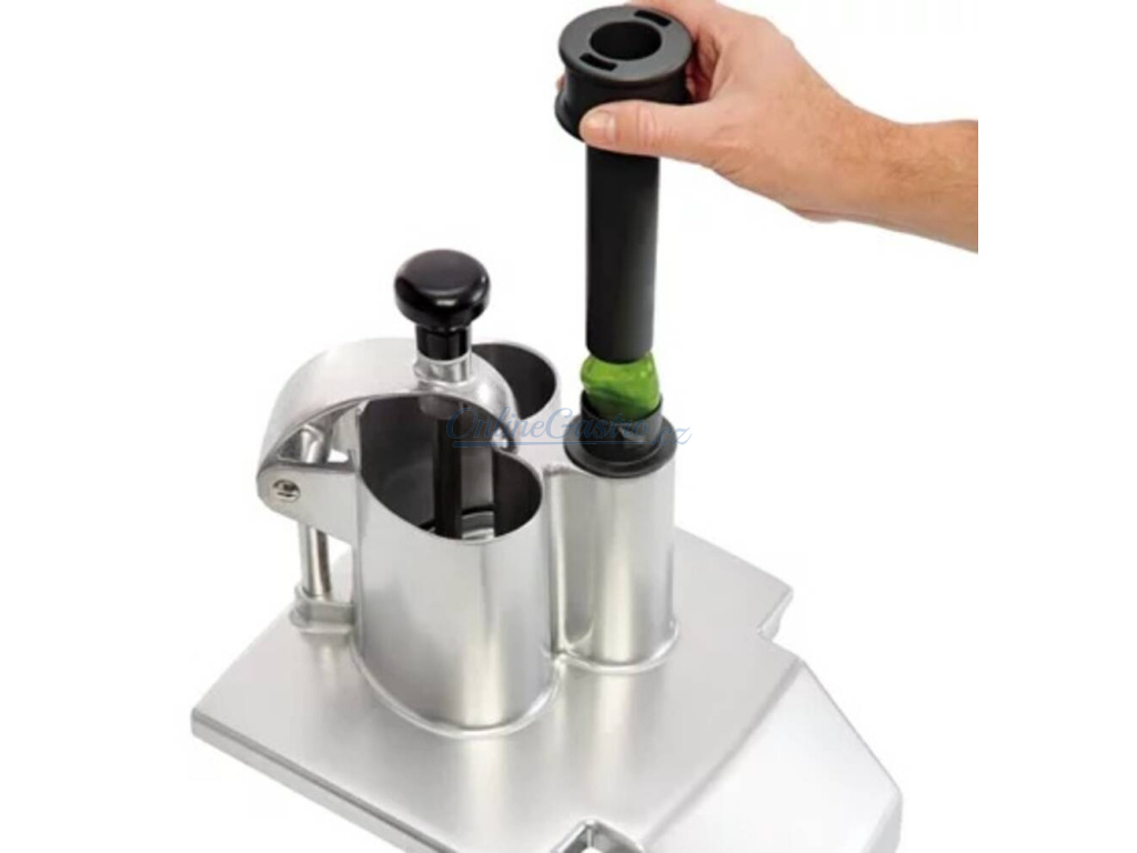- 1 x pěchovadlo Exactitube o průměru 39 mm – na krájení drobných plodů jako jsou papričky, nakládané okurky, suché salámy, chřest, raná cibulka, banány, jahody, hrozny