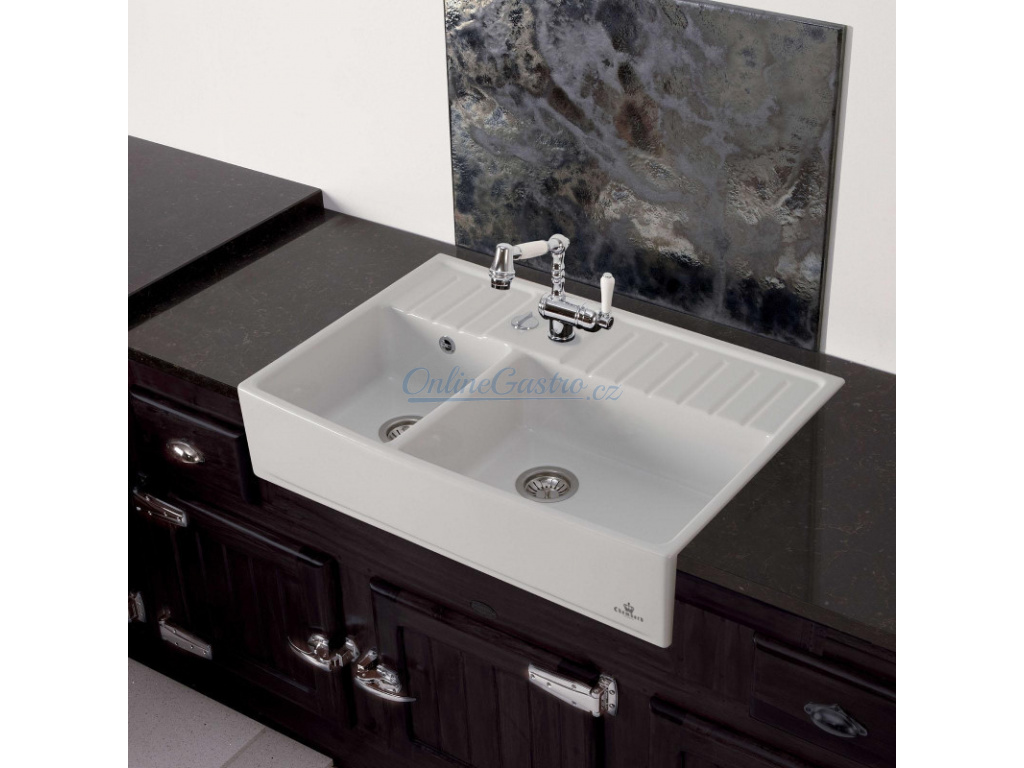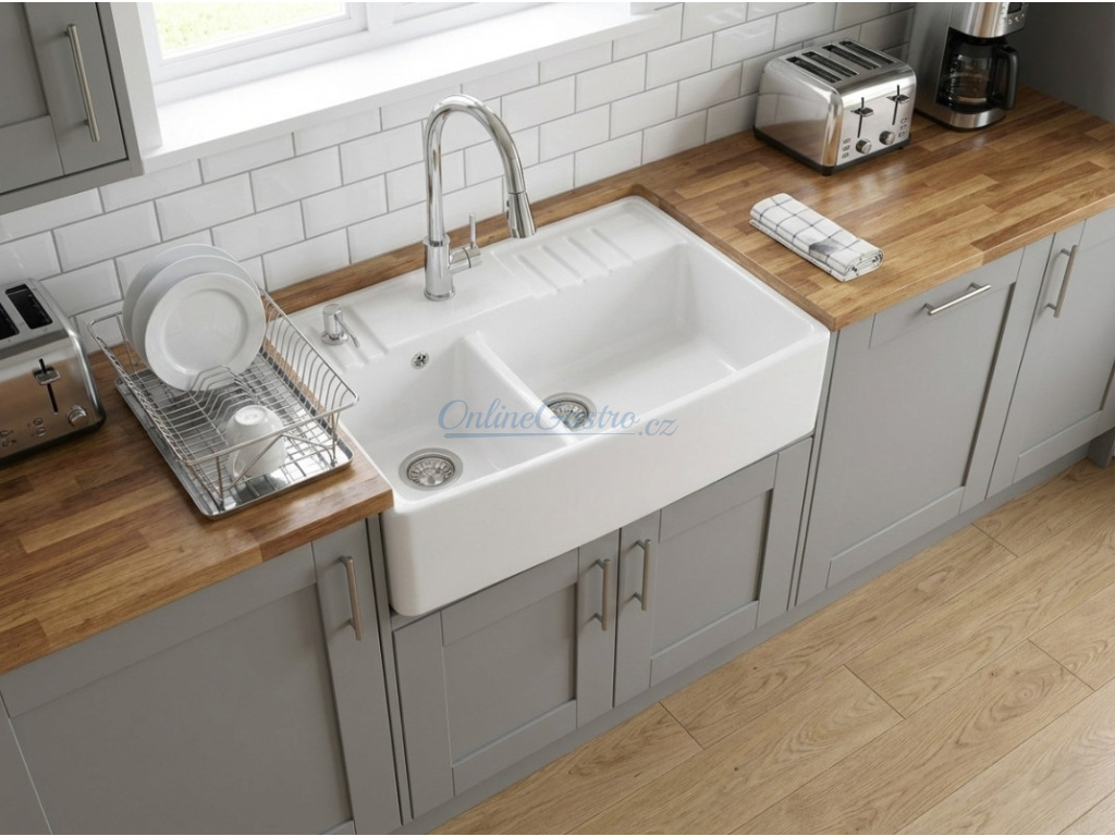 - bílý keramický dřez s rozšířenou zadní plochou