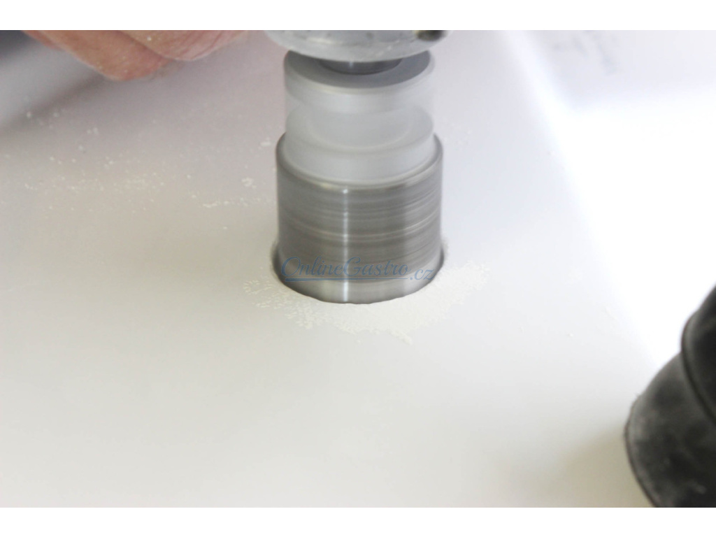 - odvrtání otvorů pro zapuštěný dávkovač nebo pro tlačítko k drtiči zdarma