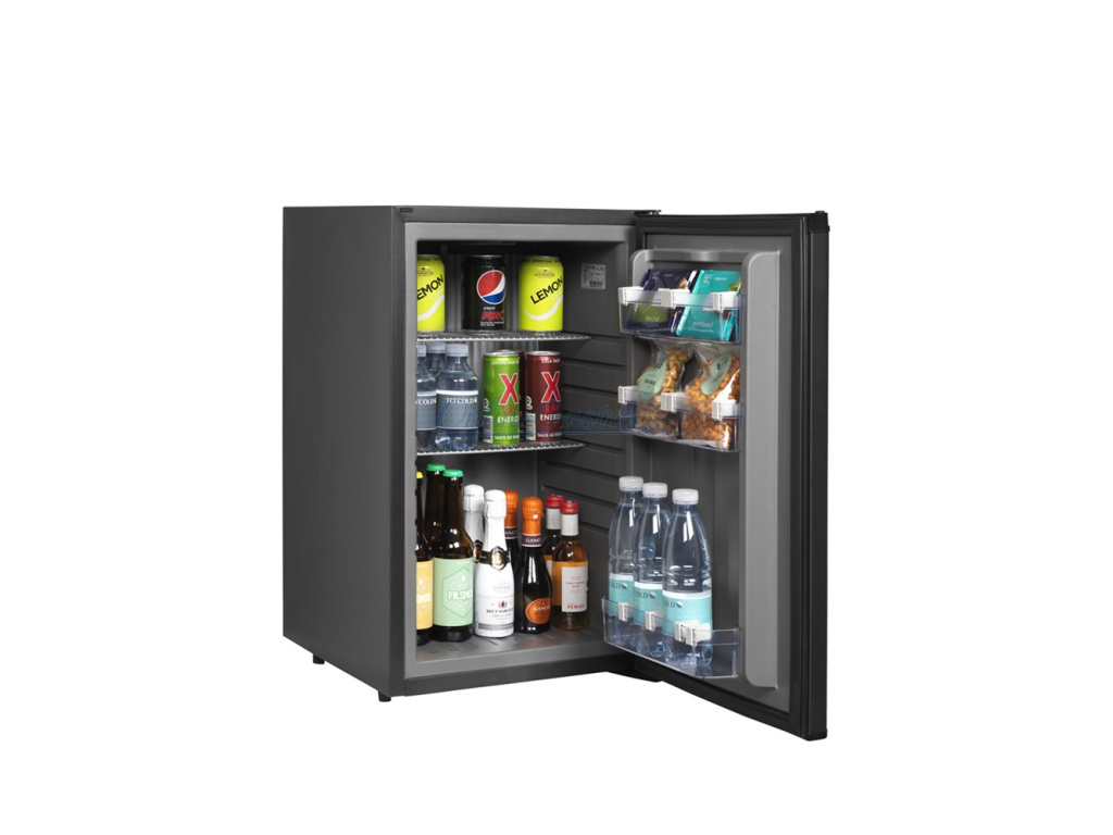 je moderní chladicí skříň s objemem 42 litrů, která díky absorpční technologii funguje zcela bezhlučně. To z ní dělá ideální volbu do hotelových pokojů, kanceláří nebo domácností, kde je klíčová kombinace tichého provozu, elegantního designu a úsporného provozu. Tento minibar udržuje teplotu v rozsahu +2 až +12 °C, disponuje dvěma policemi pro praktické uspořádání obsahu a je vybaven LED osvětlením, které zajistí perfektní přehled i při nízkém osvětlení místnosti. Díky digitálnímu ovládání je regulace teploty přesná a uživatelsky příjemná. Praktické rozměry 402 × 463 × 670 mm umožňují umístění i do menších prostor. Zámek dveří přidává další vrstvu bezpečnosti, takže minibar je vhodný i do veřejných prostor. Roční spotřeba činí pouze 230 kWh, což zaručuje ekonomický a ekologický provoz.