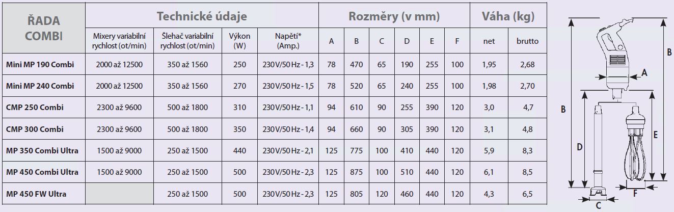 Mixér ponorný Mini MP 240 A COMBI - dostupné příslušenství