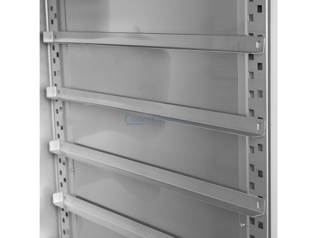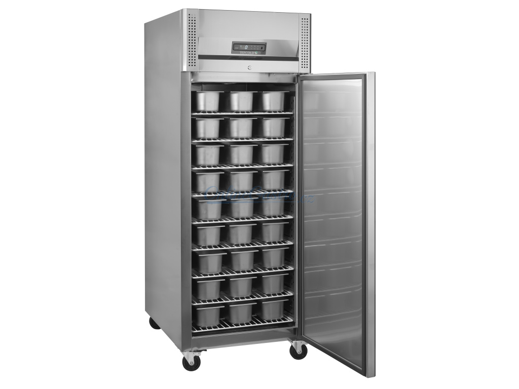 Tento mrazák je všestranným pomocníkem pro profesionální kuchyně, pekárny, cukrárny nebo zmrzlinárny. Díky ventilovanému chlazení udržuje rovnoměrnou teplotu po celé komoře, což je zásadní při skladování těst, pečiva nebo zmrzlinových směsí. Díky rozměrům polic 600 × 800 mm je vhodná pro přepravky na pečivo, zeleninu i maso, čímž zjednodušuje manipulaci a přehled ve skladu. Robustní konstrukce z nerezové oceli SS304 zajišťuje dlouhou životnost a hygienické prostředí i při vysoké zátěži.
