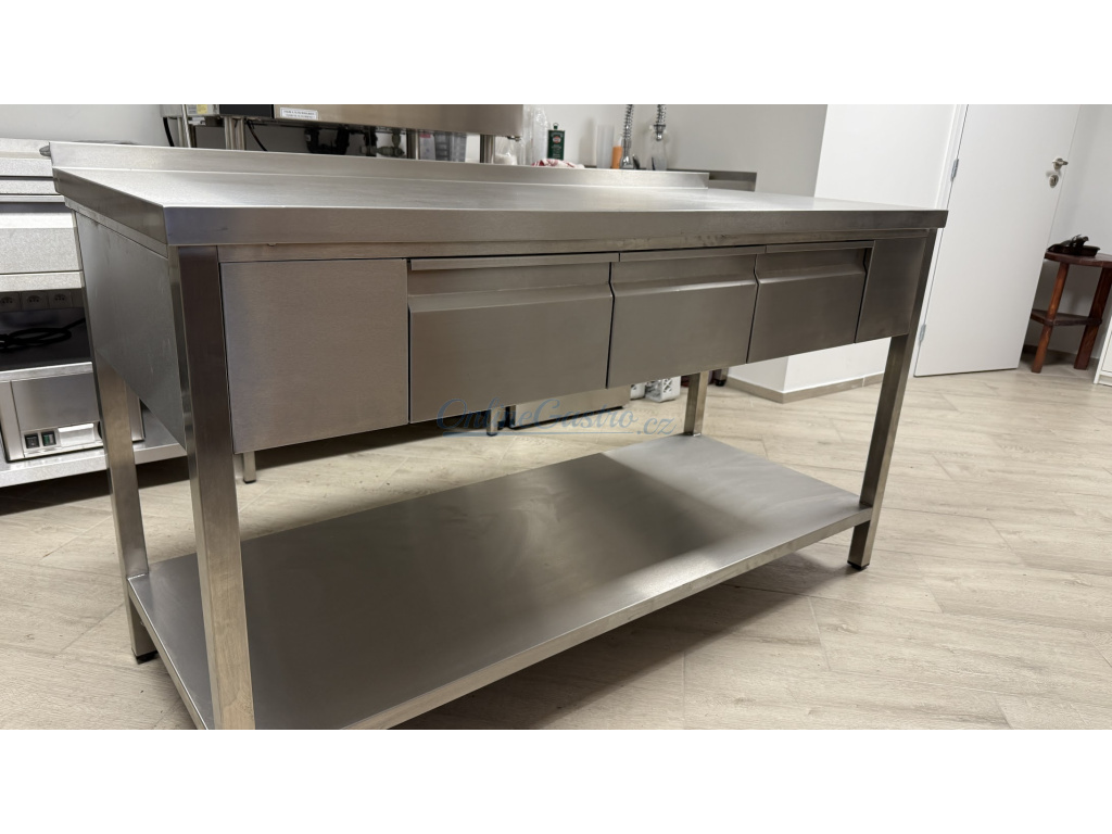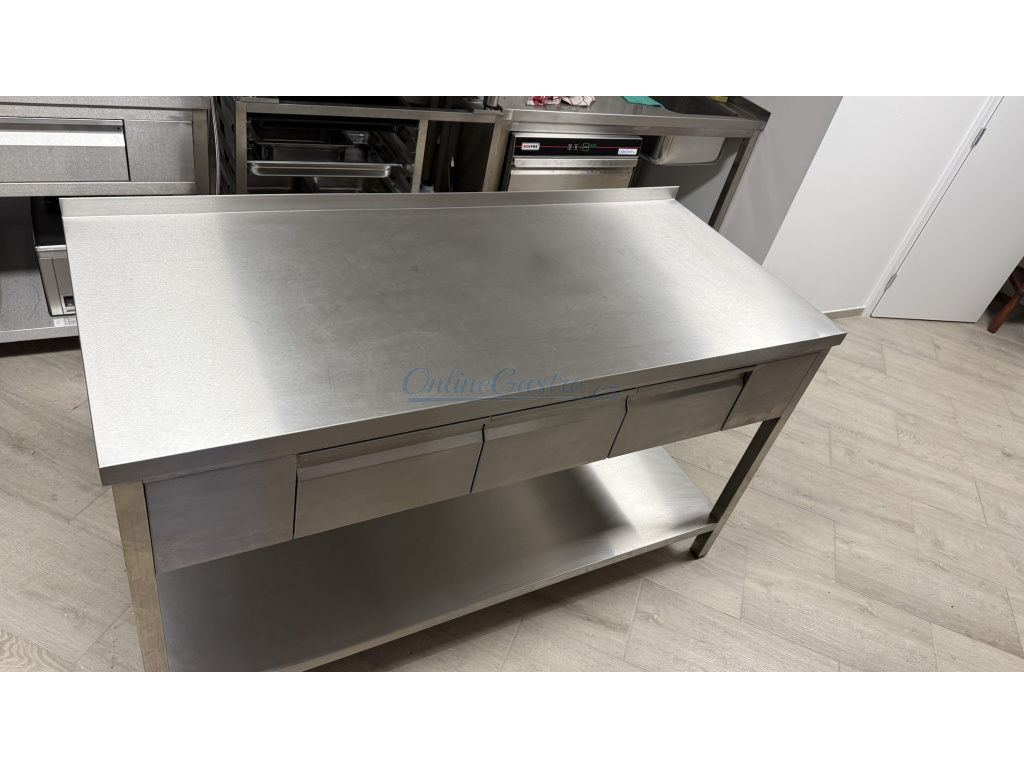 Nerezový stůl se třemi zásuvkami a policí 1500x700x900mm - skladem!