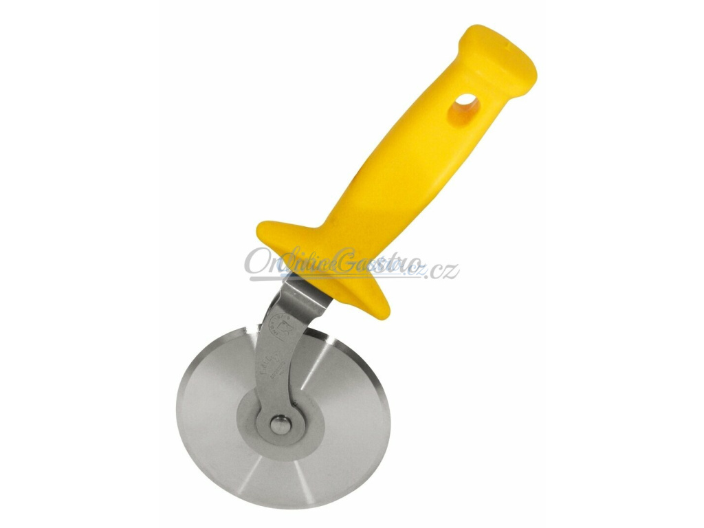 Zahnutý nůž na krájení pizzy s oboustranným uchycením nože v masivním provedení s dlouhou životností.