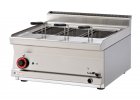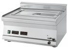 BM 98 G Vodní lázeň plynová, vana pro 2x GN 1/1 – 150 mm + 2x GN 1/3 – 150 mm, piezzo zapalování, věčný plamen, napouštěcí kohoutek, bezpečnostní ventil proti přetečení, dveře a víka možno dokoupit.