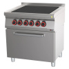 Profesionální sporák elektrický třífázový RM TPF 78 ET s troubou statickou pro GN 2/1. Tálová deska (77 x 57 cm) o síle 2 cm, 4x varná plocha (2,5 kW).
