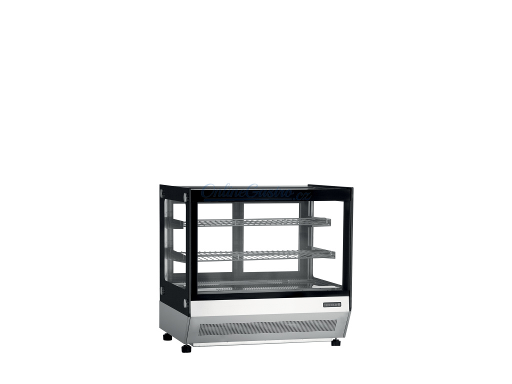 Vitrína je vyrobena z nerezové oceli a skla, má dvojité prosklení a dvě posuvné zadní dveře, které usnadňují obsluze manipulaci. Součástí jsou dvě chromové drátěné police a základna, které společně poskytují výstavní plochu 0,72 m². Díky rozměrům (š × h × v) 700 × 560 × 670 mm se vitrína snadno umístí na pult nebo pracovní stůl a díky automatickému odmrazování je její provoz zcela bezúdržbový.