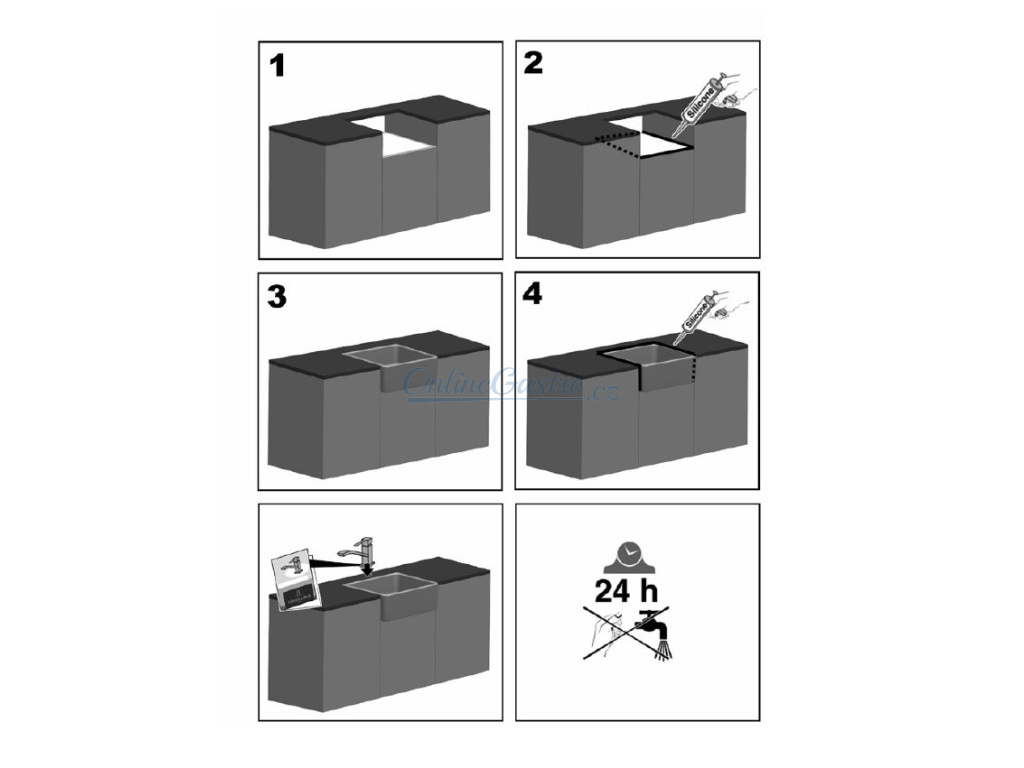 Vanička dřezu Single 595 je dostatečně hluboká ( 18 cm) pro pohodlné mytí nádobí. Samostatný modulový dřez je určen do skříňky od 60 cm. Villeroy & Boch Single 595 Mosaic řadíme do kategorie modulových dřezů. To znamená, že nejsou nijak pevně spojeny s pracovní deskou. Montují se přímo na instalační skříňku a pracovní deska se buď přiráží z obou boků, nebo pracovní deska překrývá okraje dřezu shora. Modulové dřezy se přednostně doporučují k montáži s pracovními deskami z nenasákavého materiálu. Pokud má být použita pracovní deska z dřevěného masivu, je třeba dbát na kvalitní impregnaci okrajů výřezů v desce.