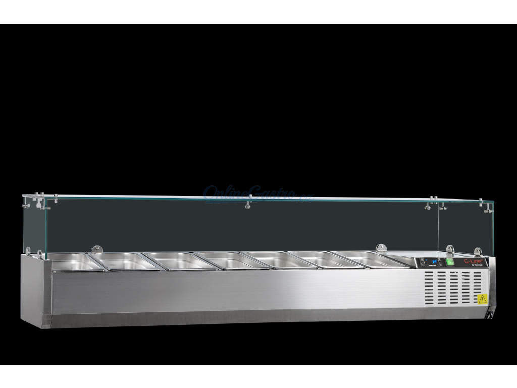 Vitrína chladicí pultová Tefcold GVC38-160 - GVC je navržen tak, aby splňoval požadavky rychlého stravování. Ať už provozujete pizzerii, fast food nebo sendvičový bar, tato vitrínová chladnička vám usnadní přípravu jídel a zajistí, že vše, co potřebujete, bude přehledně uspořádáno a po ruce. Na chladící pult lze umístit gastronádoby (nejsou součástí dodávky) – více informací o kapacitě této konkrétní jednotky najdete v technických specifikacích. GVC udržuje optimální teplotu pomocí spolehlivého statického chladicího systému. Díky tomu zůstávají suroviny čerstvé a připravené k použití, zatímco funkce ručního odmrazování zabraňuje tvorbě námrazy a zajišťuje bezproblémový provoz. Je vyrobena z odolné nerezové oceli SS201, je konstruována pro dlouhou životnost a je vybavena proskleným ochranným víkem. Zajišťuje tak hygienu tím, že chrání potraviny a nabízí vynikající viditelnost. GVC je ideální pro podniky, kde je rychlost a kvalita zásadní, a je navržen tak, aby optimalizoval proces přípravy jídel.
