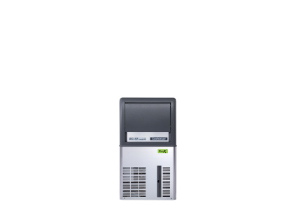 Výrobník kostkového ledu N 50 A chlazený vzduchem s produkcí 52 kg / 24 h má zásobník ledu a plná dvířka. Bez odpadového čerpadla.