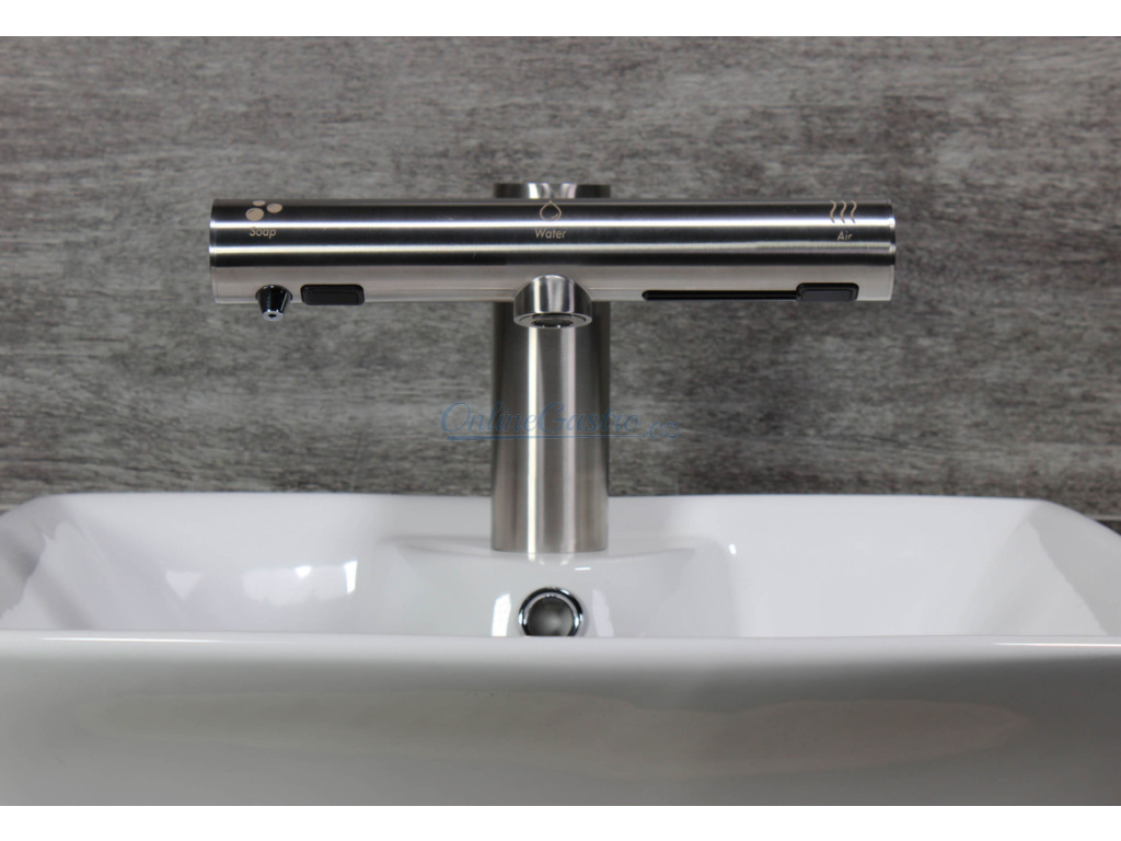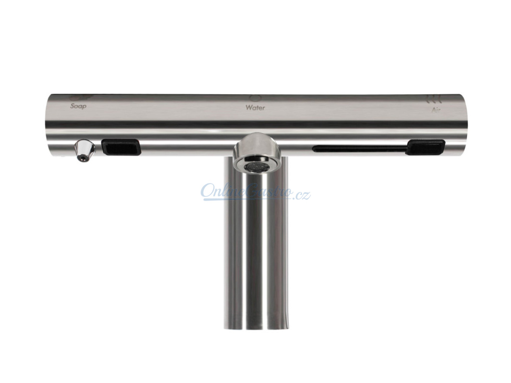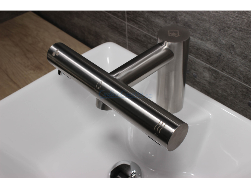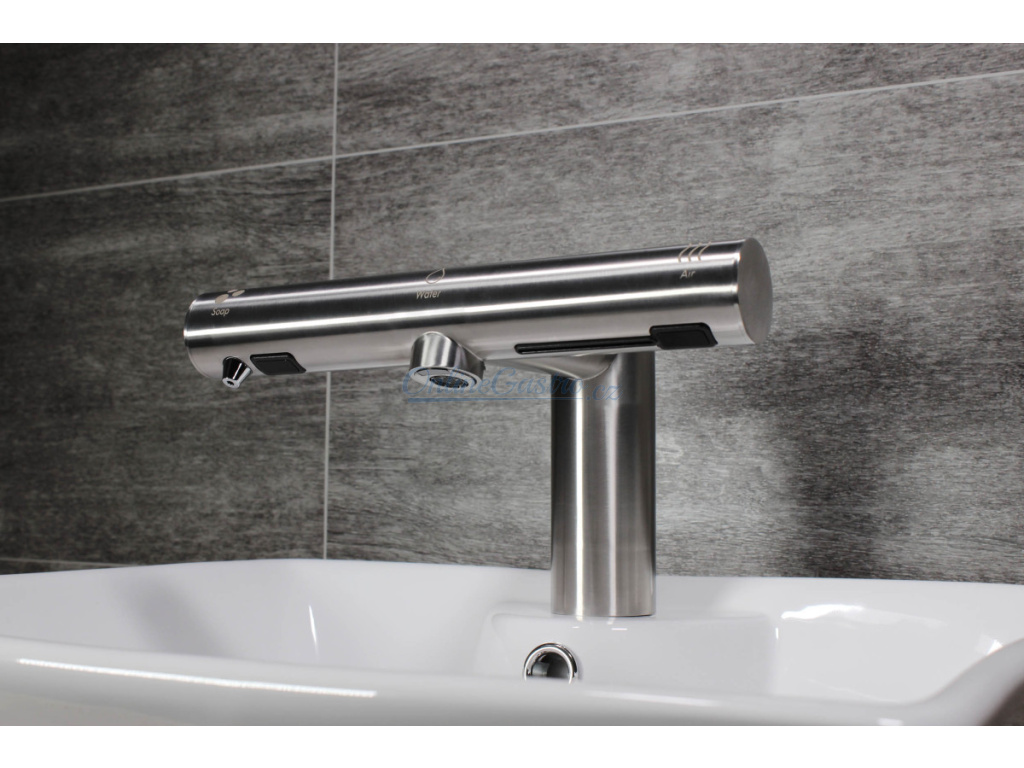 je inovativní kombinovaný dávkovač pěnového mýdla, automatická vodovodní baterie a vysoušeč rukou v jednom moderním zařízení. Je určen pro rychlou, bezdotykovou a maximálně hygienickou péči o ruce přímo u umyvadla. Uživatel si tak během několika vteřin umyje ruce mýdlem, opláchne je a vysuší výkonným proudem vzduchu (95 m/s) – a to bez přesunu k jiným zařízením.