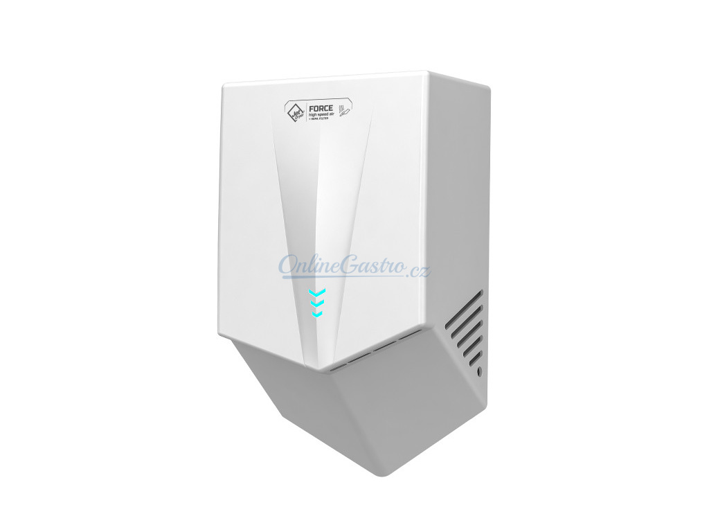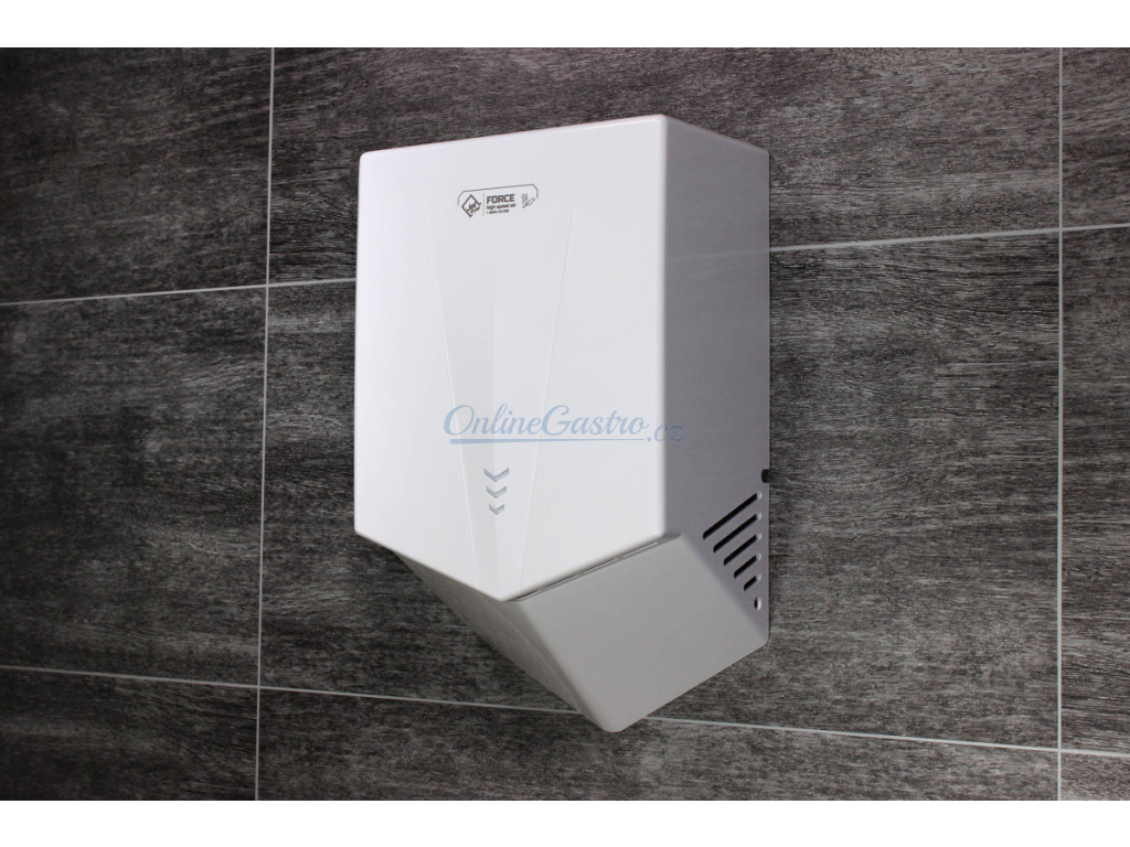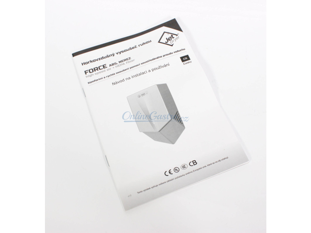 Jet Dryer FORCE se používá intuitivně – uživatel přiloží ruce do vzdálenosti 15–20 cm od senzoru a přístroj se automaticky spustí. Silný proud vzduchu o rychlosti až 150 m/s ruce osuší během 10–15 sekund, zatímco HEPA filtr odstraní 99,97 % částic, bakterií a virů. Systém inteligentního ohřevu zajistí příjemnou teplotu vzduchu při chladnějším okolí a vypne se, pokud teplota překročí 25 °C, čímž šetří energii. Bezdotyková aktivace a snadno čistitelný povrch z kartáčovaného nerezu zajišťují hygienický a pohodlný provoz i při vysoké frekvenci používání.
